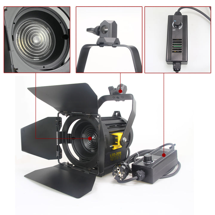Alumotech 20W Dimming 3200K/5500K Fresnel LED Spot Studio Video Light Photography Film TV Radio Broadcasting Lamp Equipment