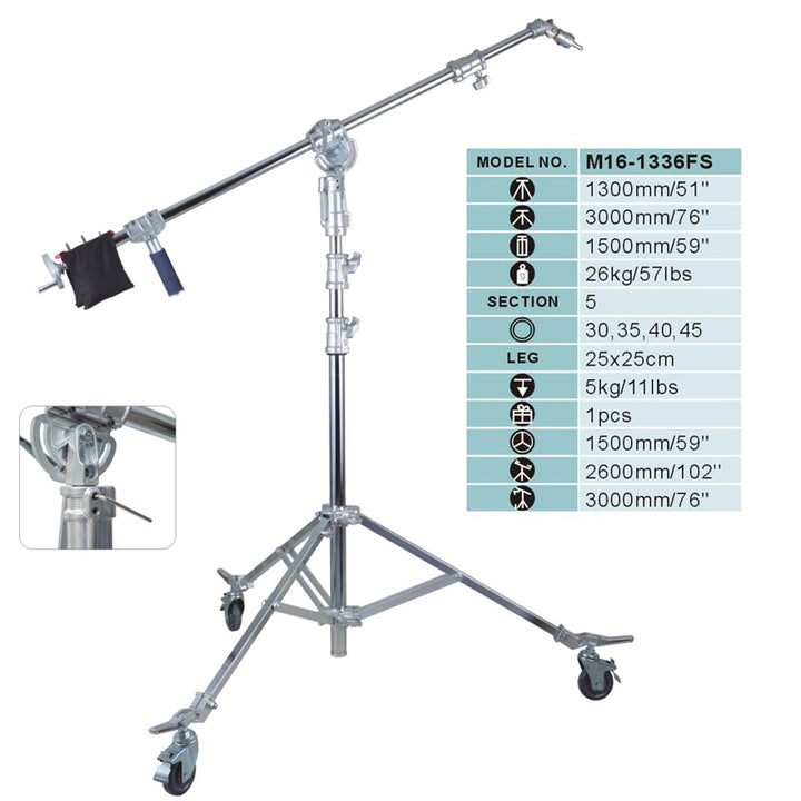 ALUMOTECH M16-1336FS Heavy Duty Light Stand Arm Boom Load 5KG Sandbag Tripod For Film TV Radio Broadcasting Studio Video Photography