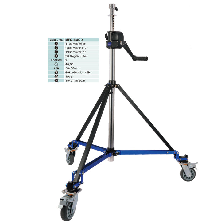 ALUMOTECH MFC-2800D Heavy Duty Light Stand Load 40KG Tripod With Wheels For Film TV Radio Broadcasting Studio Video Photography Equipment